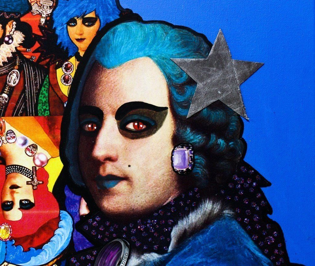 Pompualdo - acrylic, collage and glitter - 30x30 cm - 2018