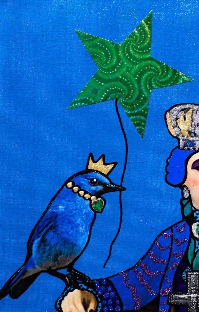 Mary Ant in Paradise - acrylic, collage, glitter - 80x80 cm - 2018