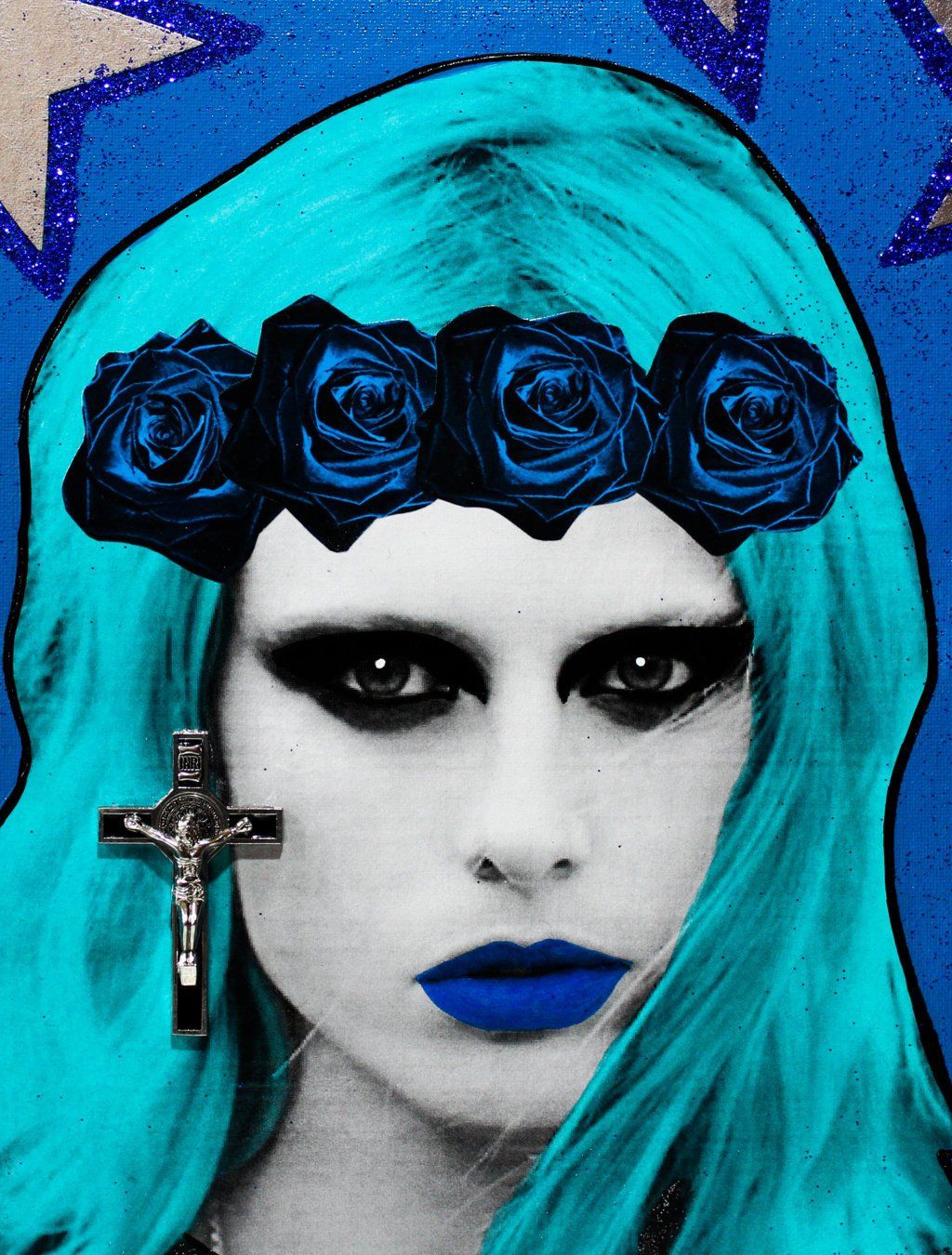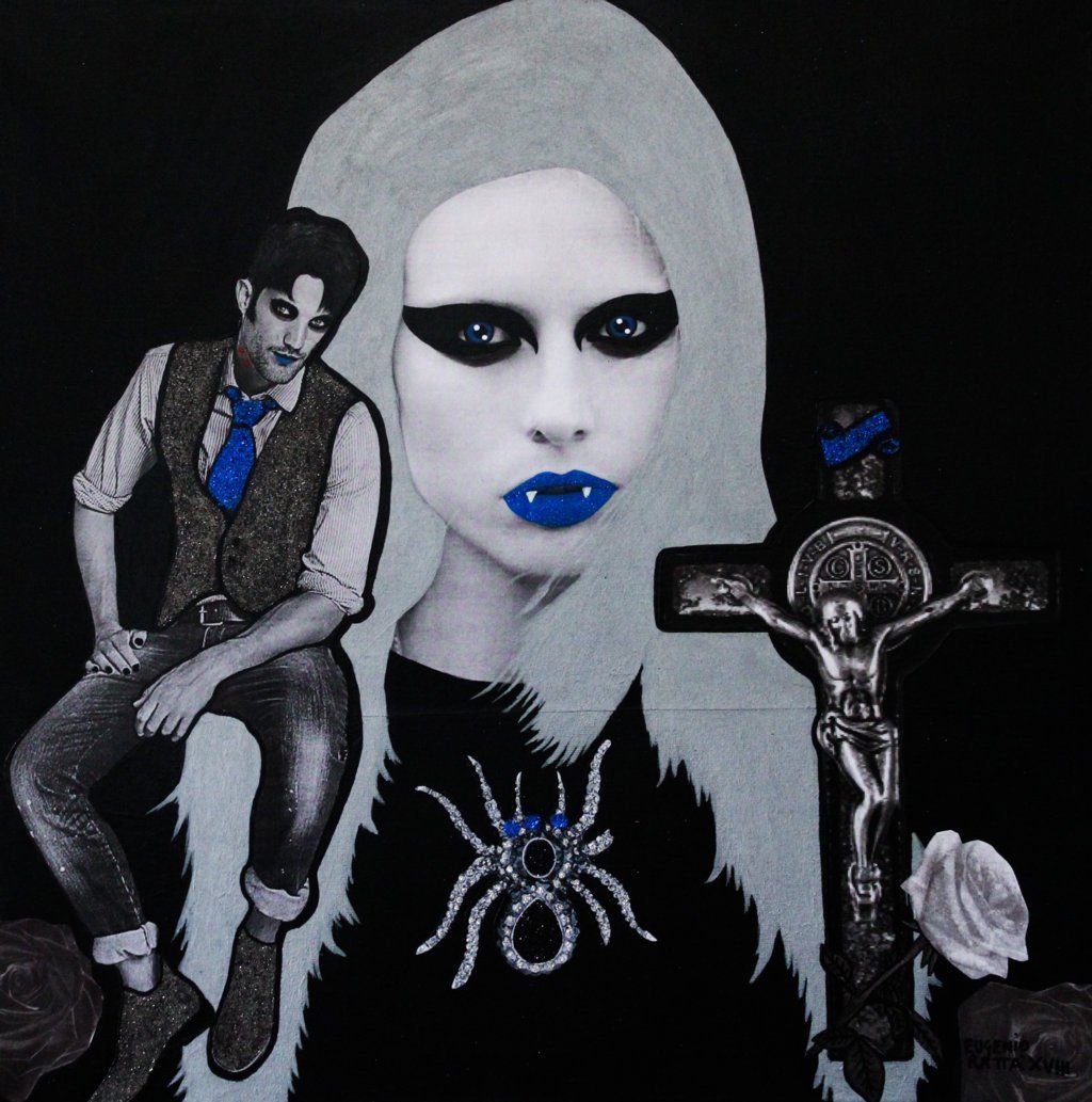 Draycia - The last Vampire - acrilico, collage e glitter - 50x50 cm - 2018
