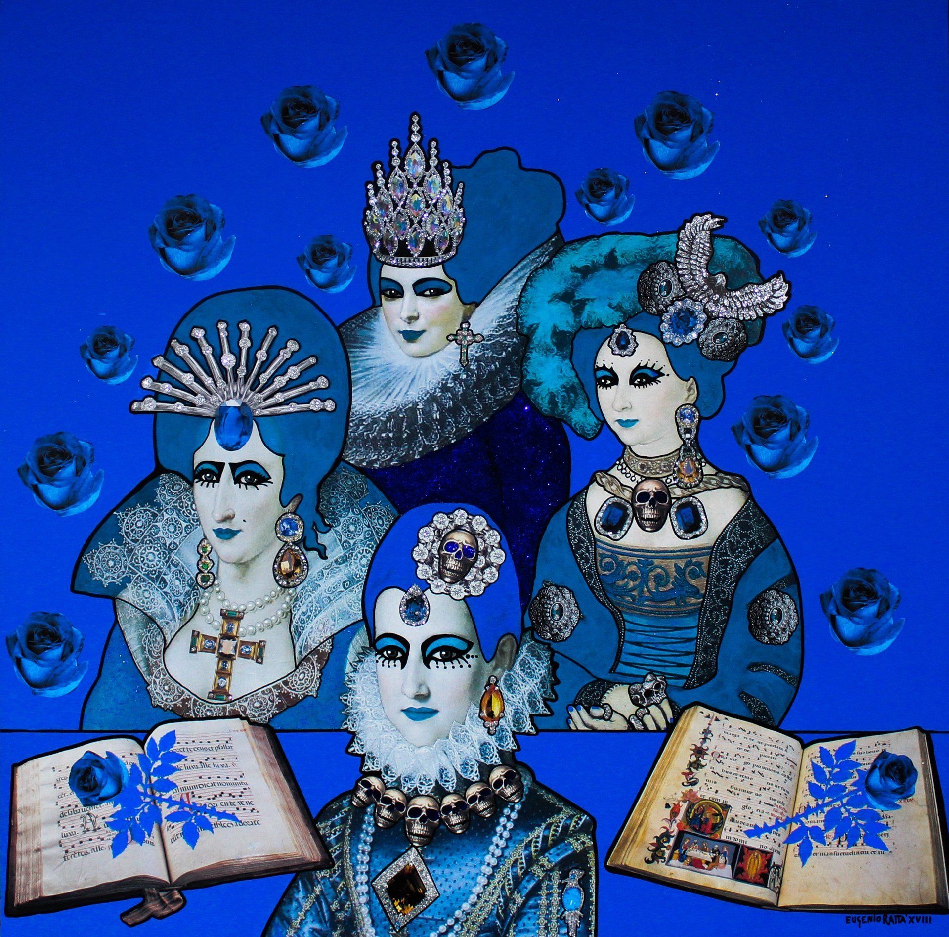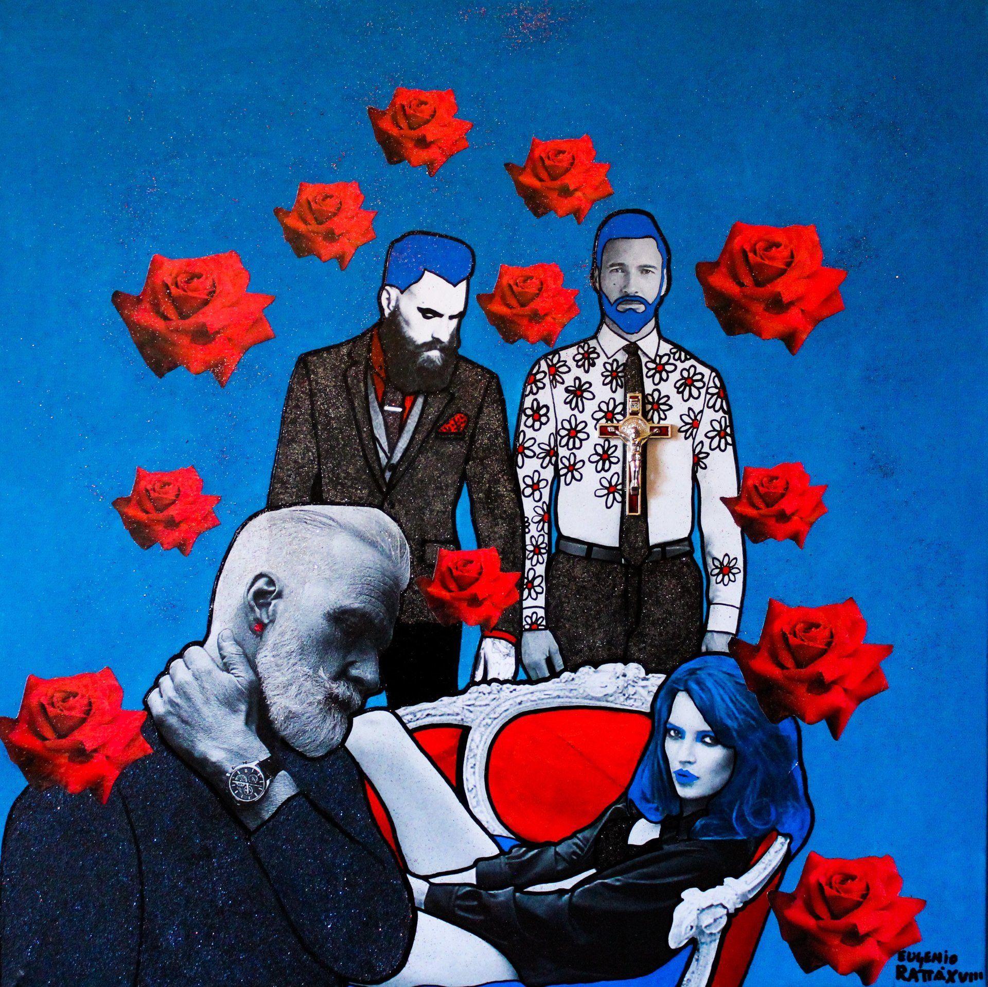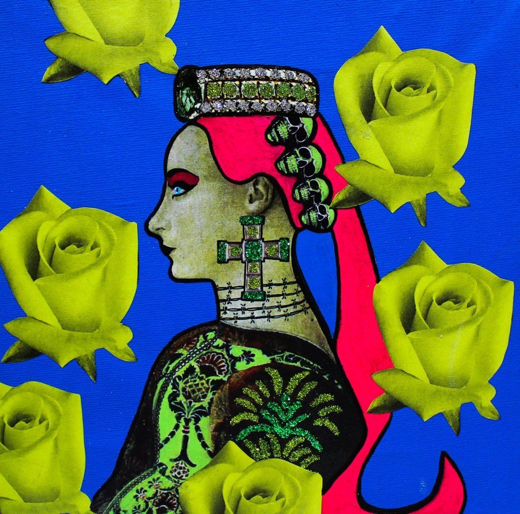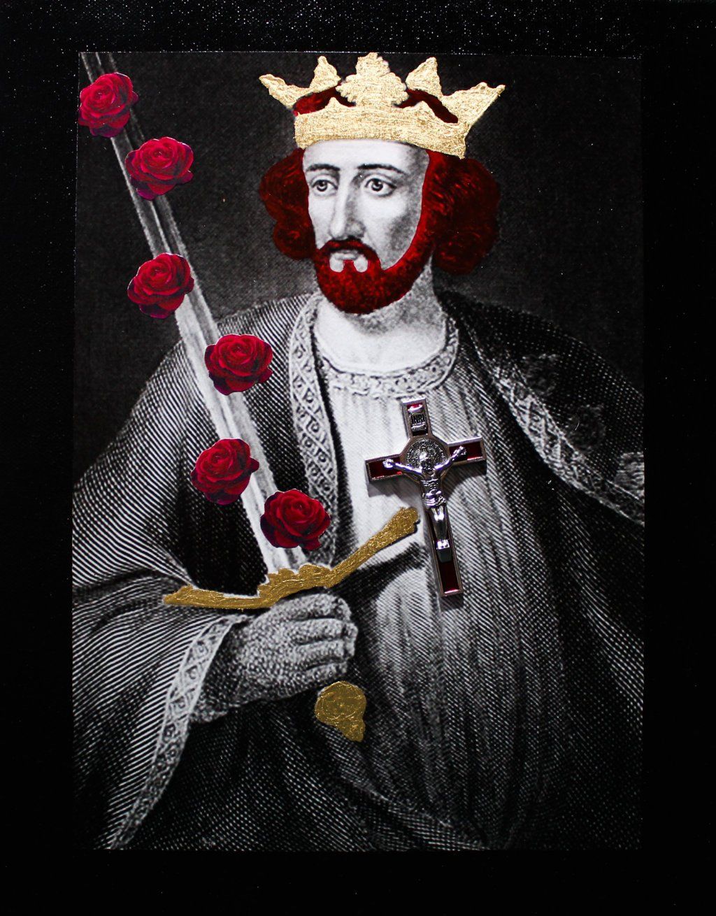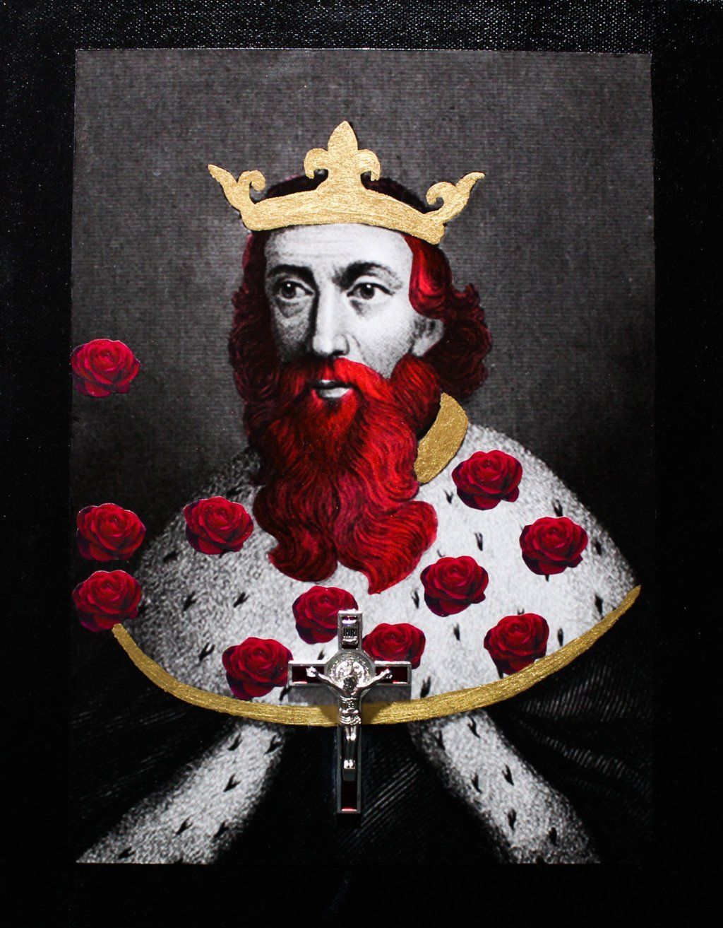 Kings and roses - Acrylic, collage, gold leaf, metal. 28x35 cm - 2018