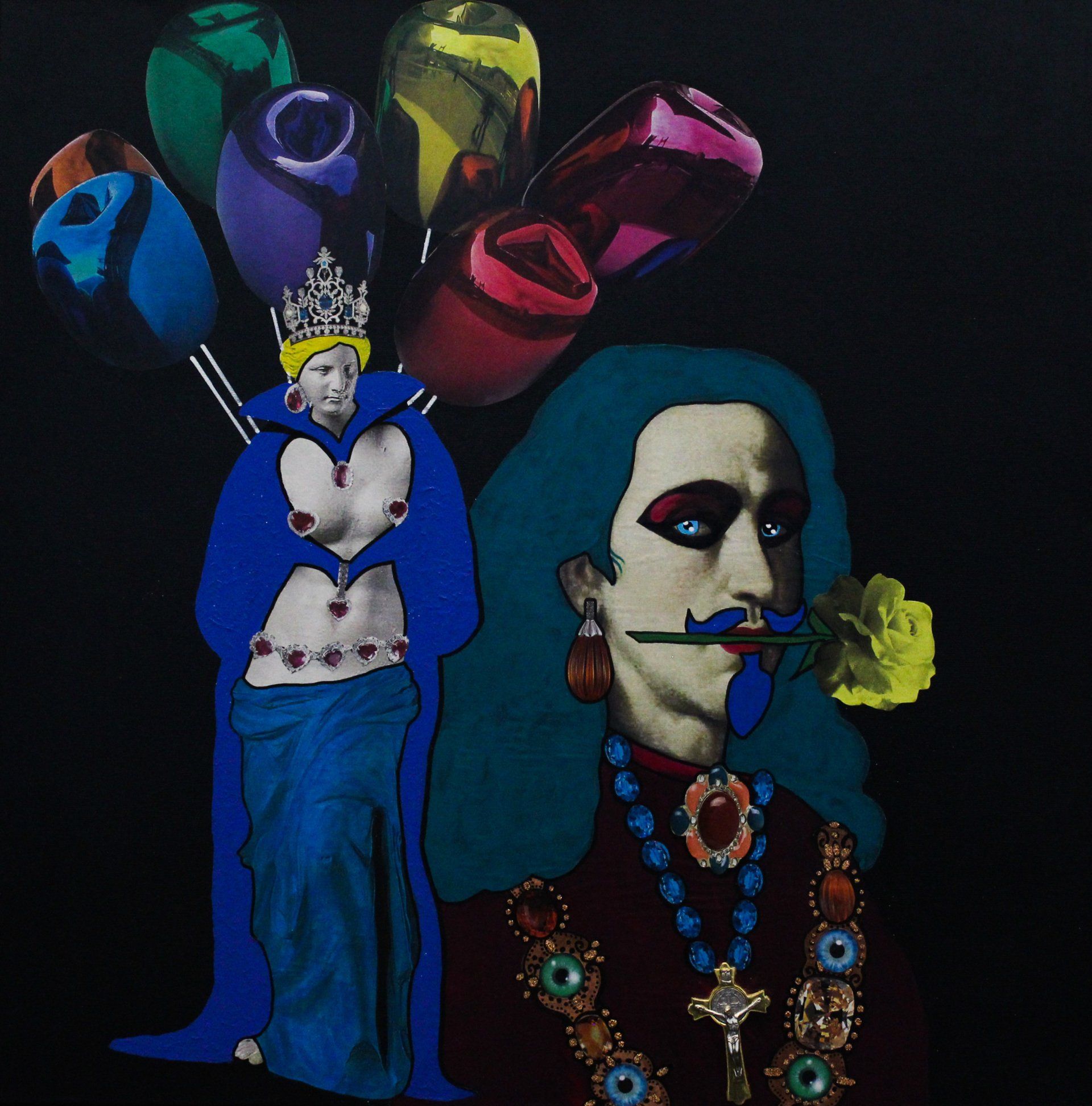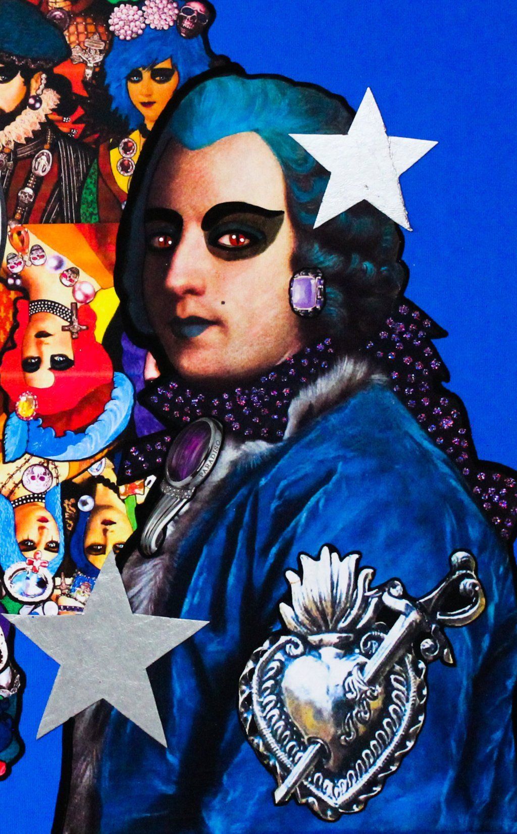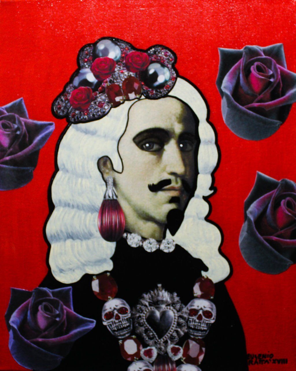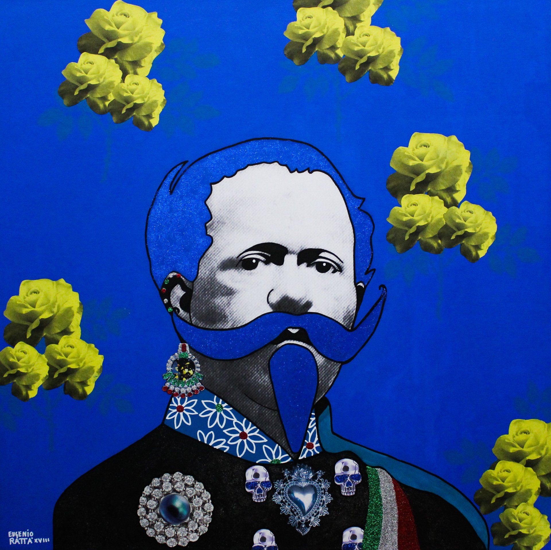 Vittorio Emanuele II - acrylic, collage, glitter - 80x80 cm - 2018