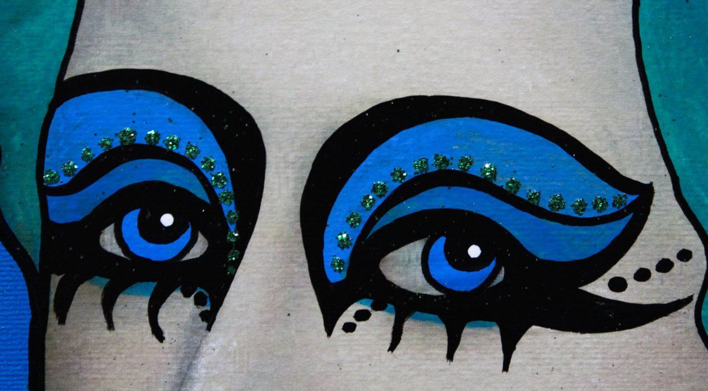 Self-portrait - acrylic, collage, glietter - 50x50 cm - 2018