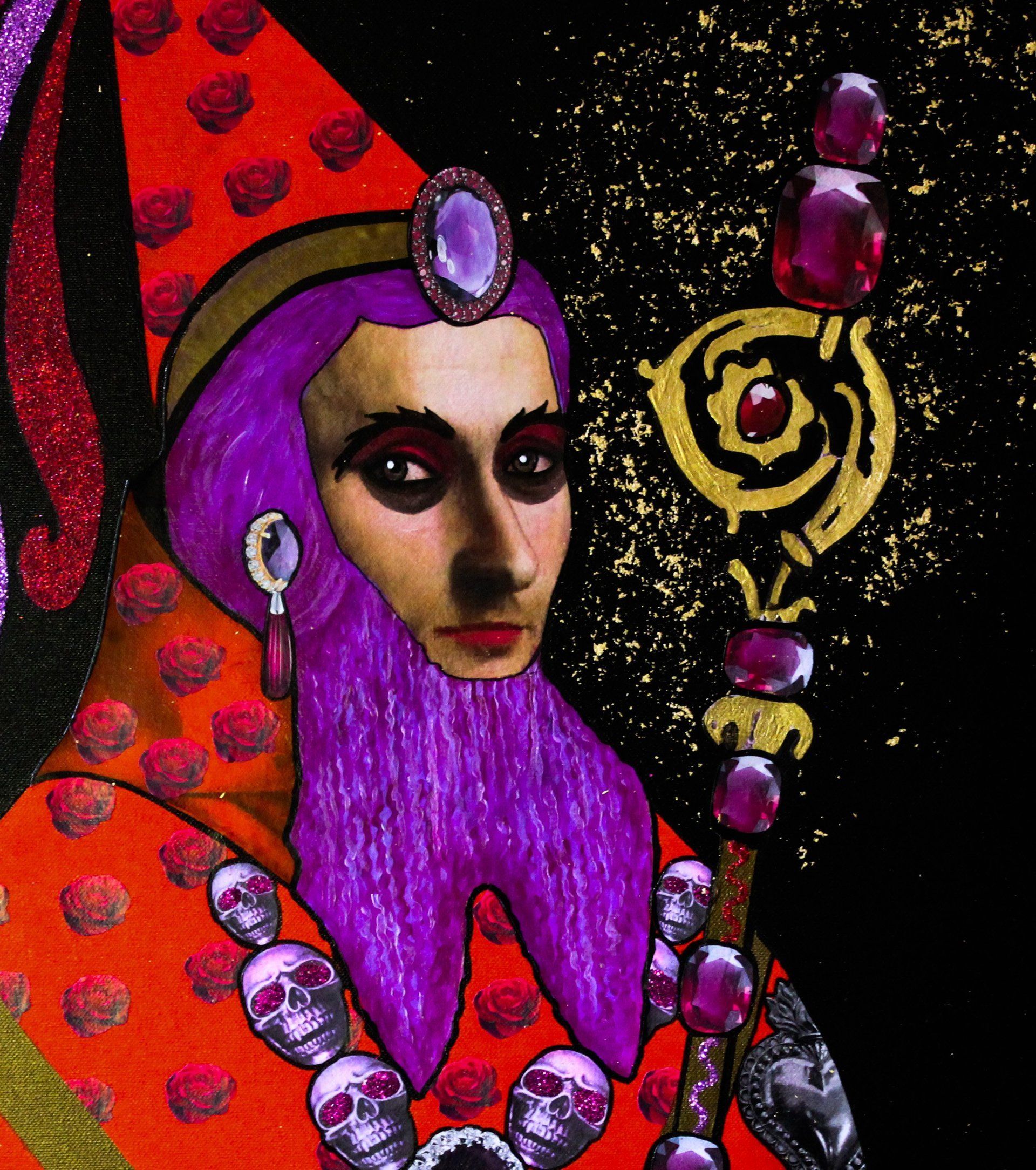 Bad Boys - "King" - acrylic, collage, gold leaf and glitter - 35x25 cm - 2018