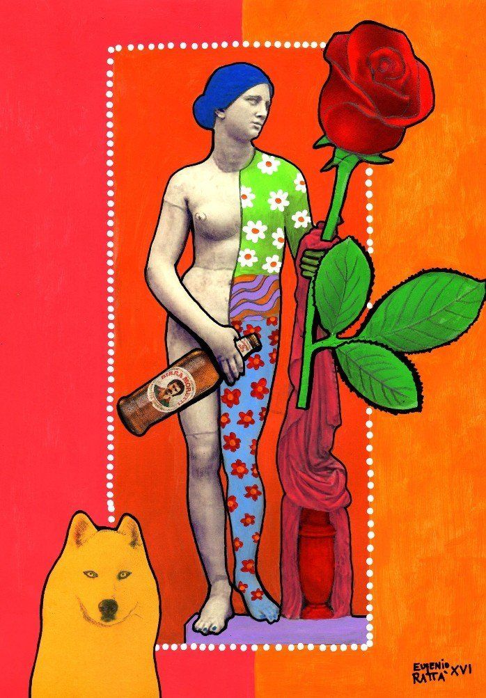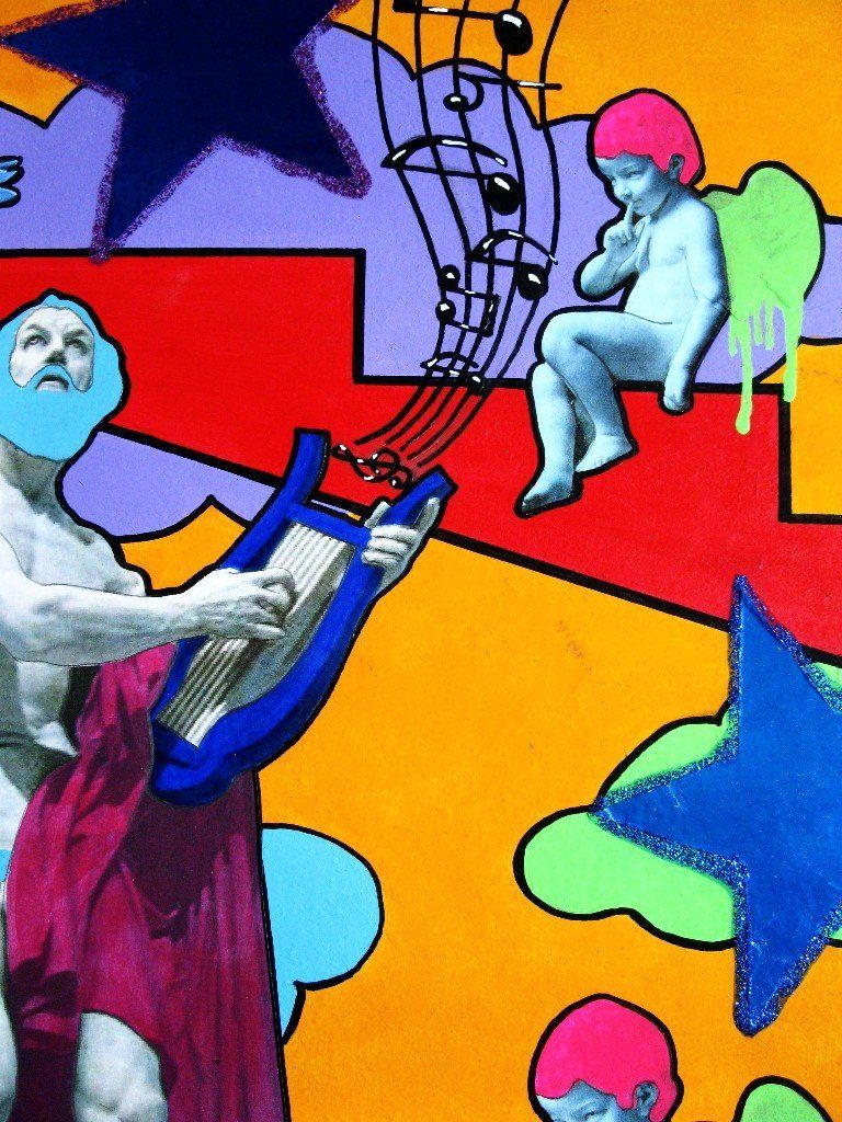 Bad Boy Remix - acrylic and collage on sweet door - diameter 22 cm - 2018