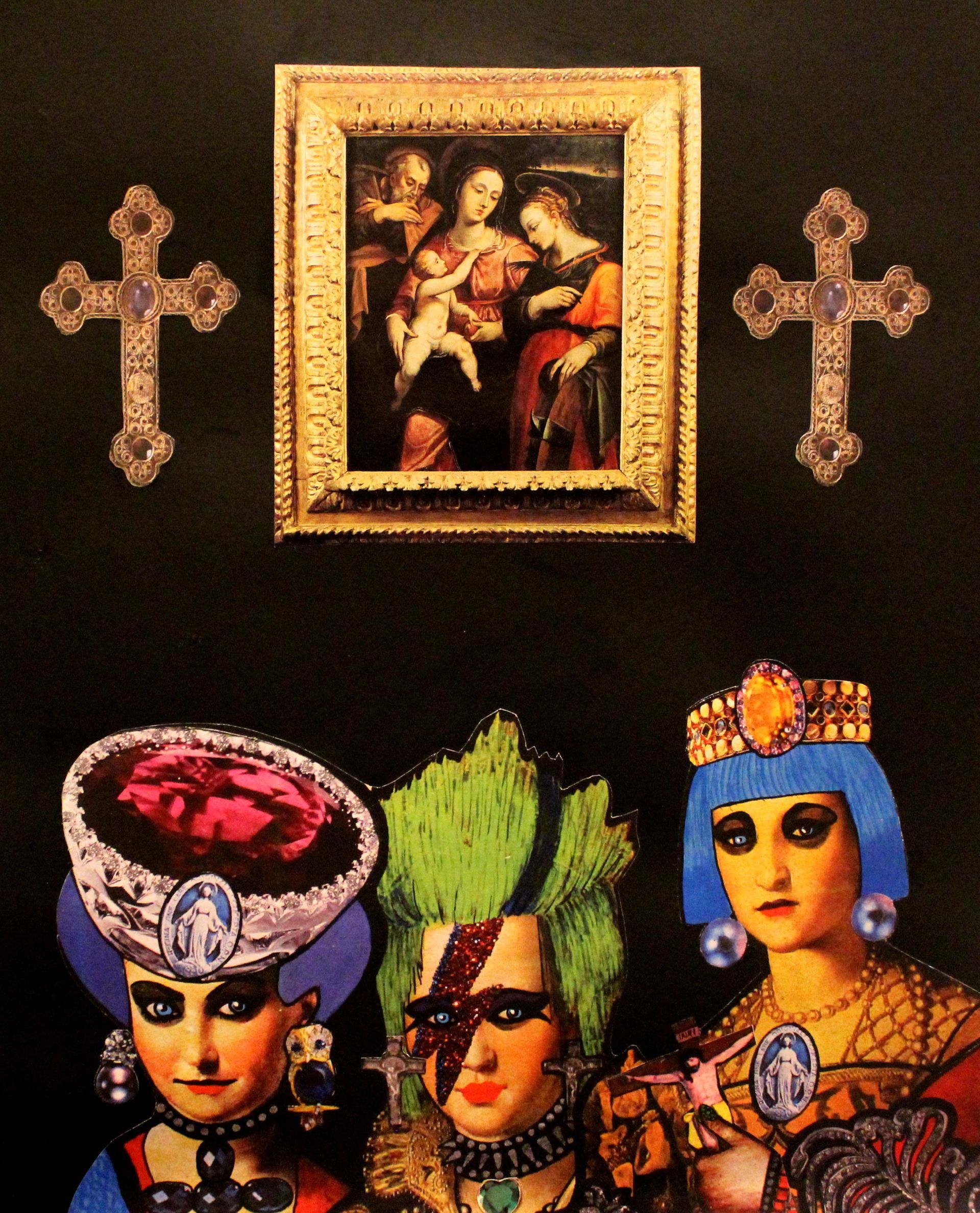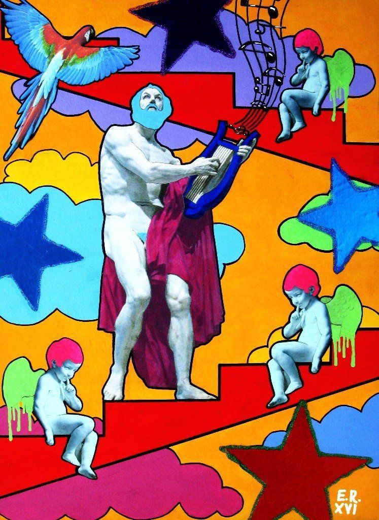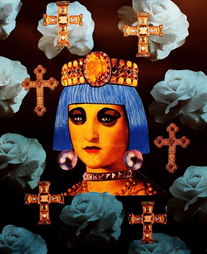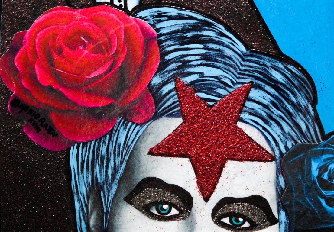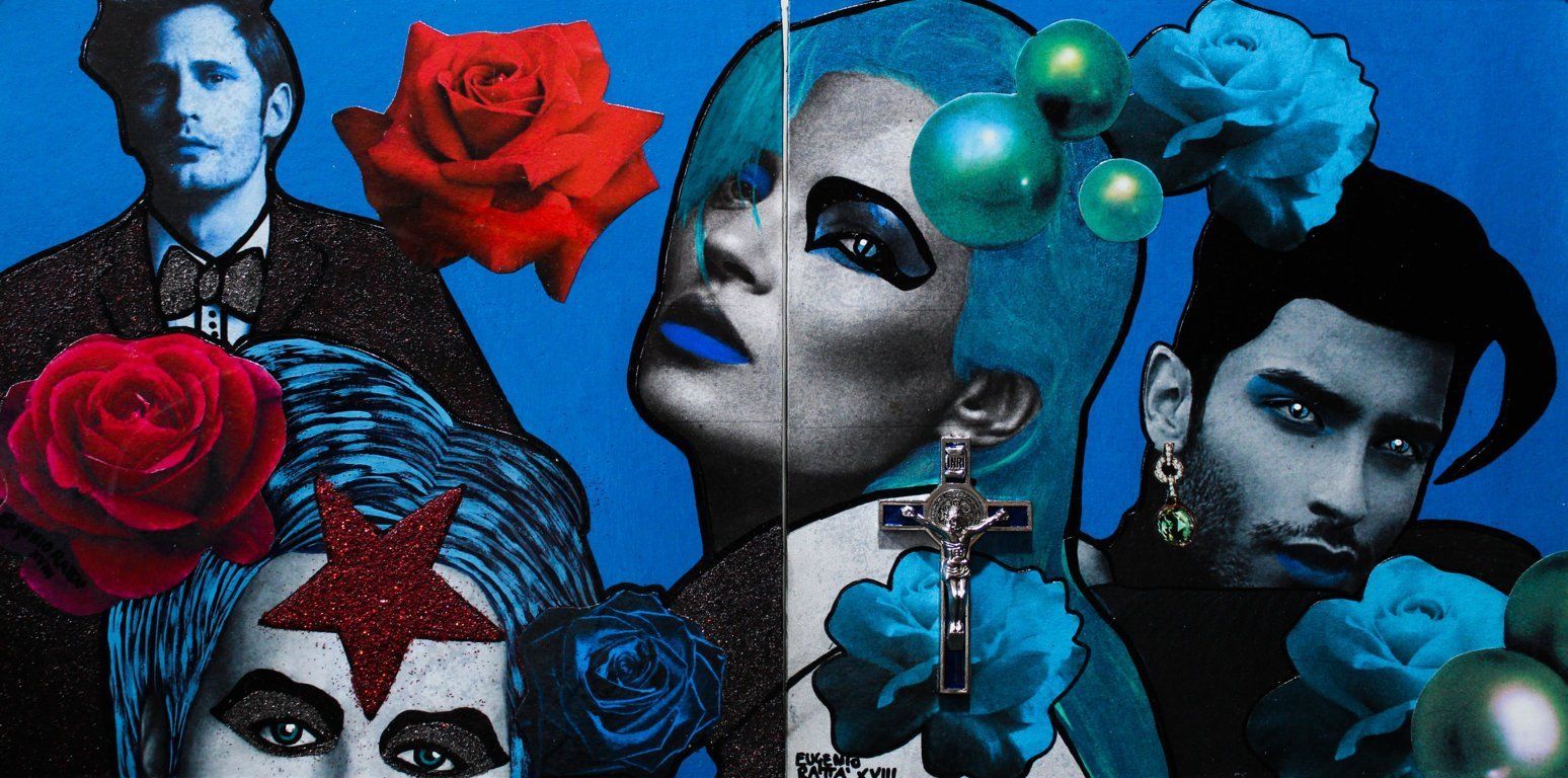 Extraterrestrial take me away - acrylic, collage, metal and glitter - 23x23 cm - 2018