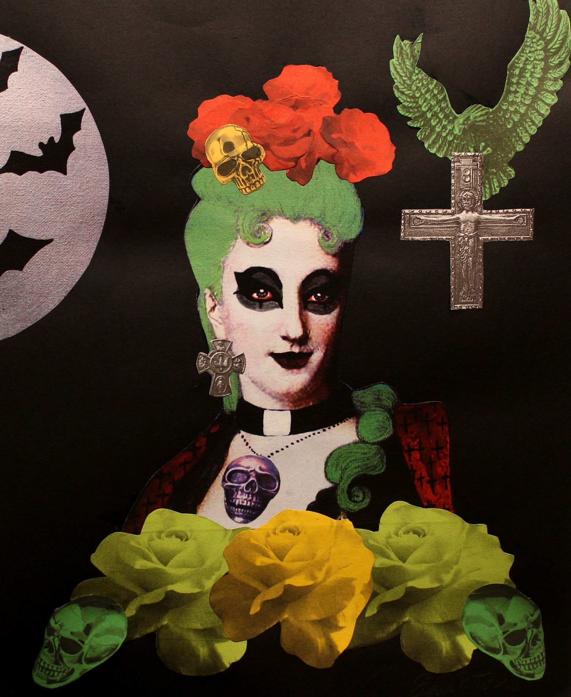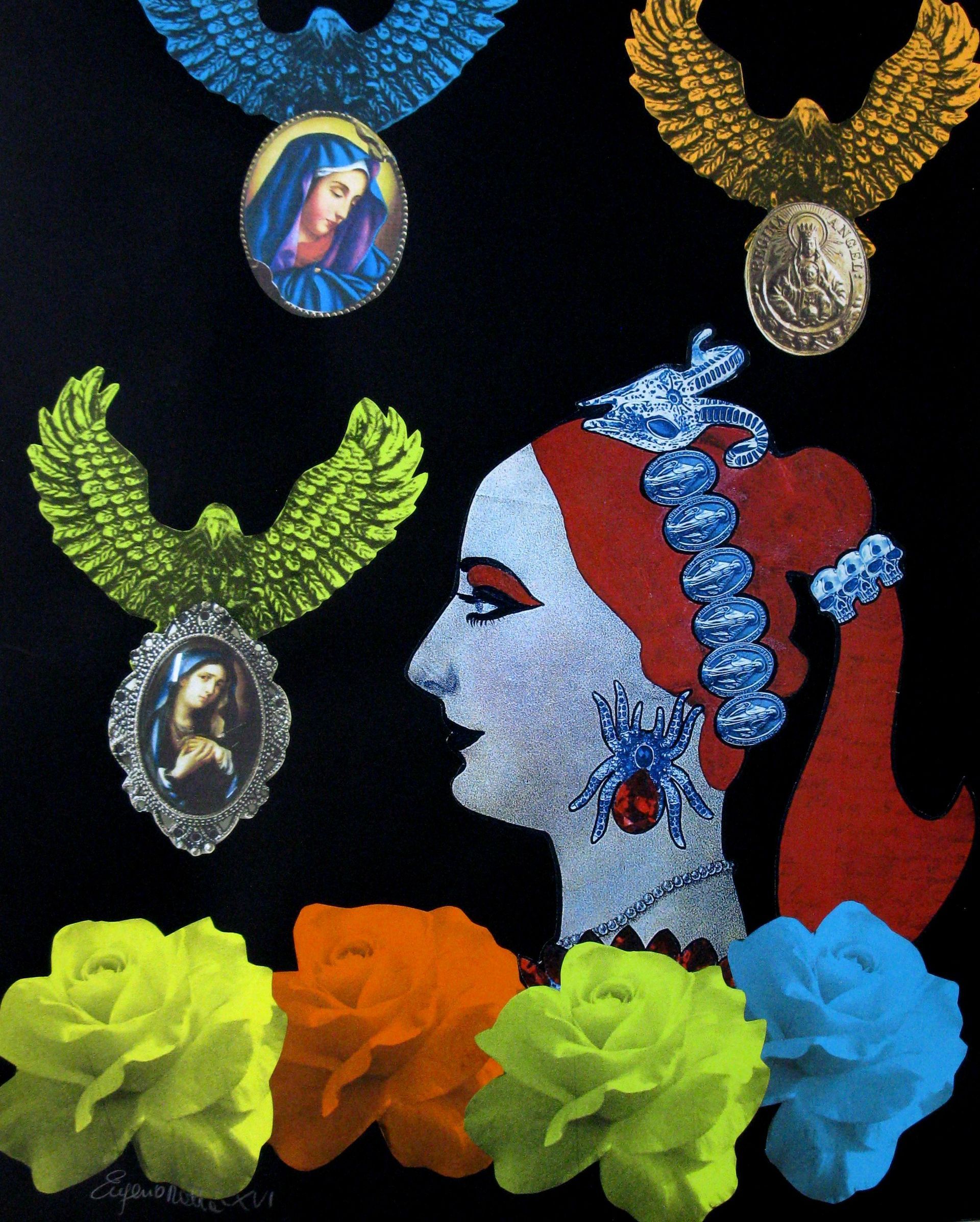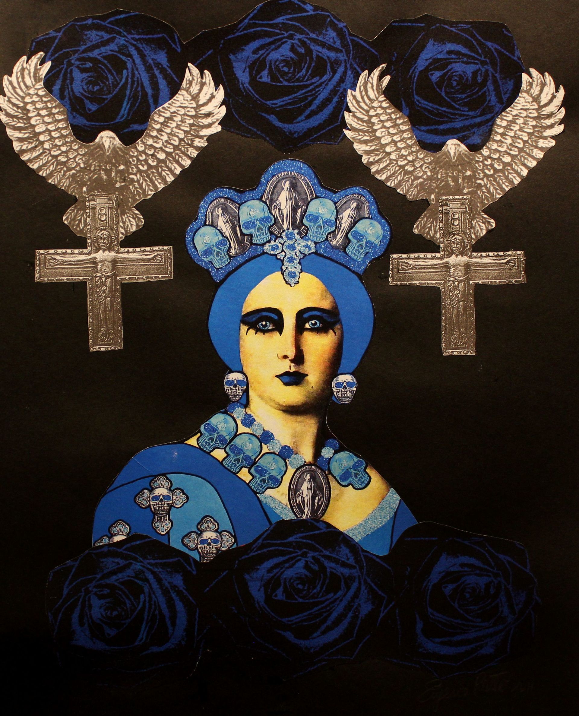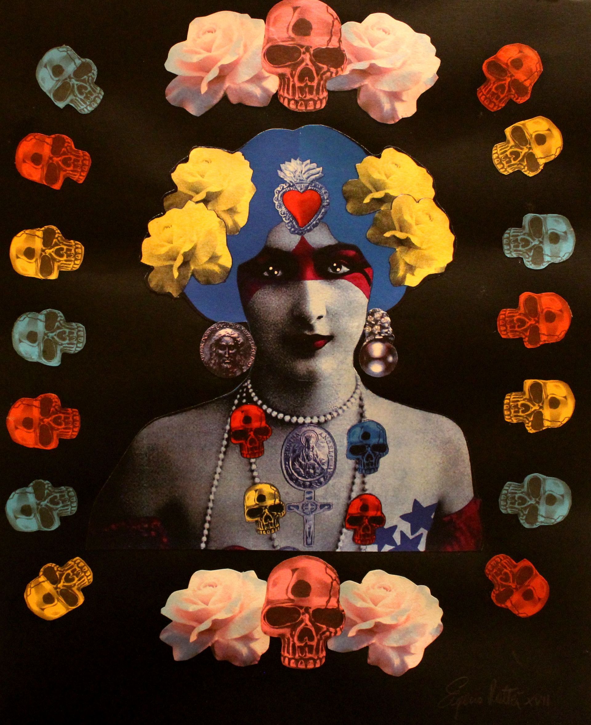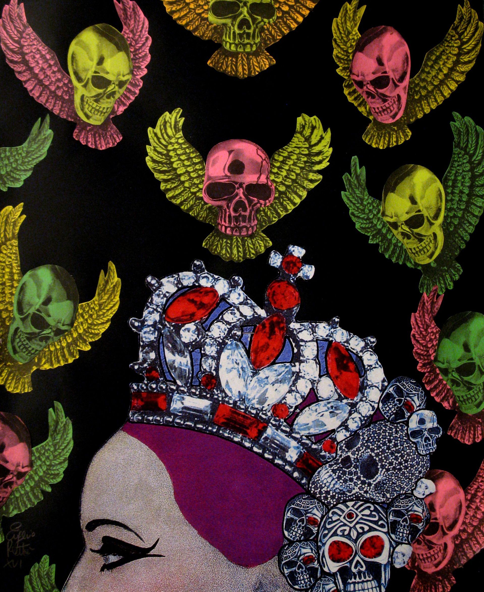 Extraterrestrial take me away - acrylic, collage, metal and glitter - 23x23 cm - 2018