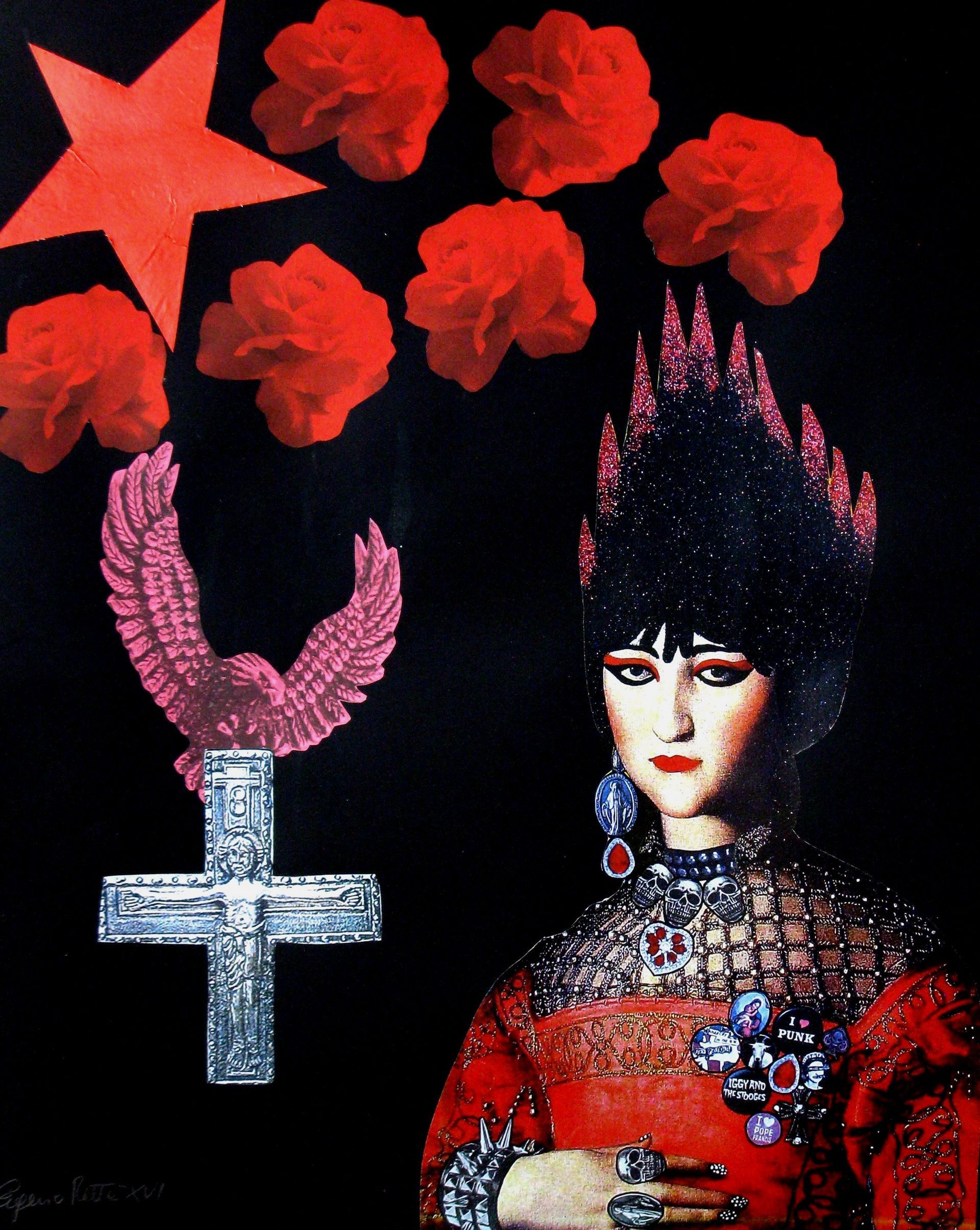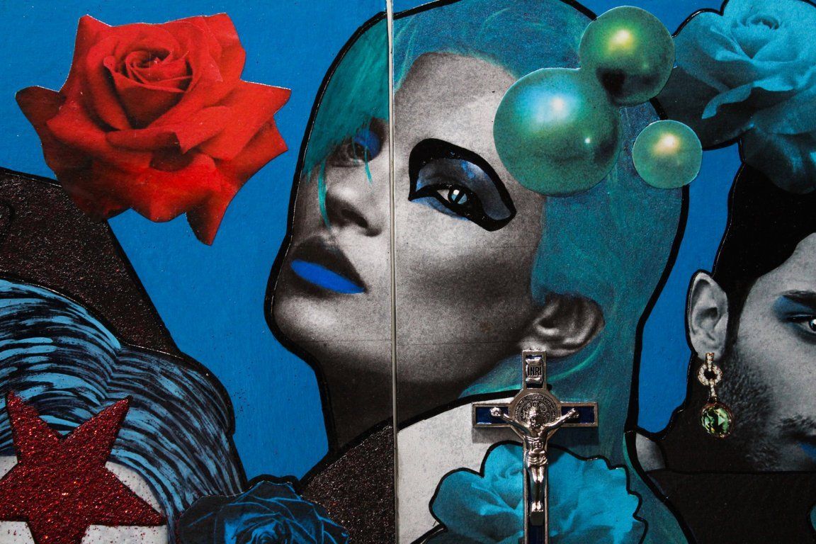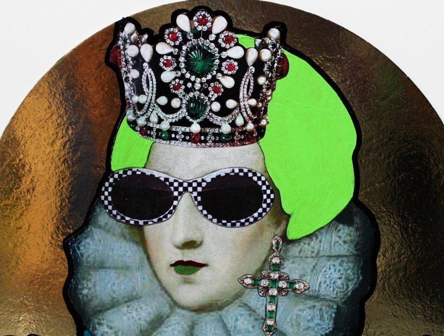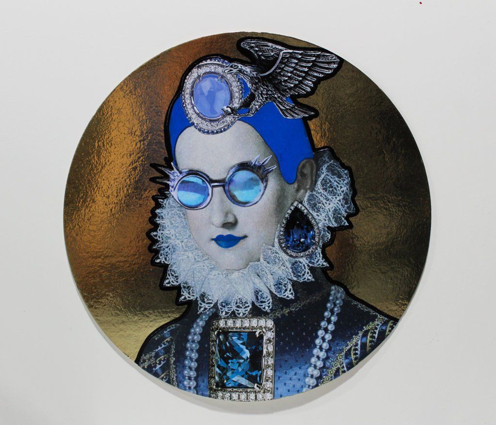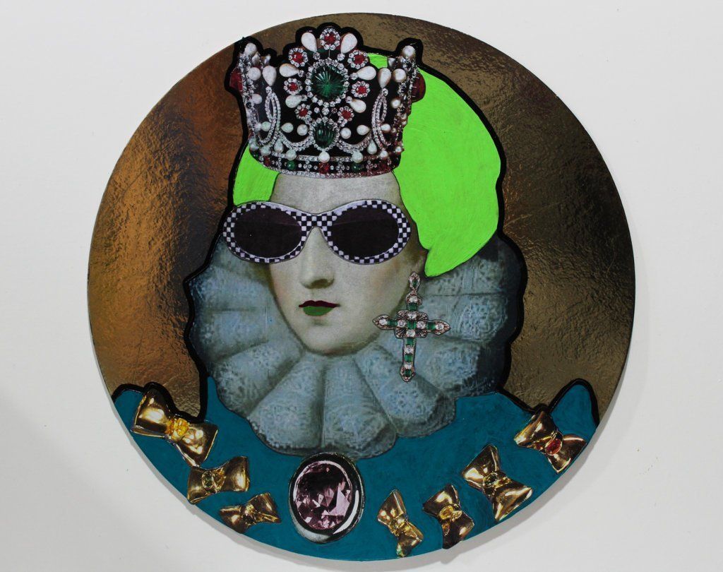 Bad Girl Remix - acrylic and collage on sweet door - diameter 22 cm - 2018