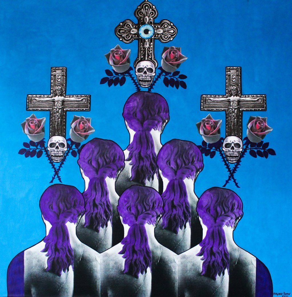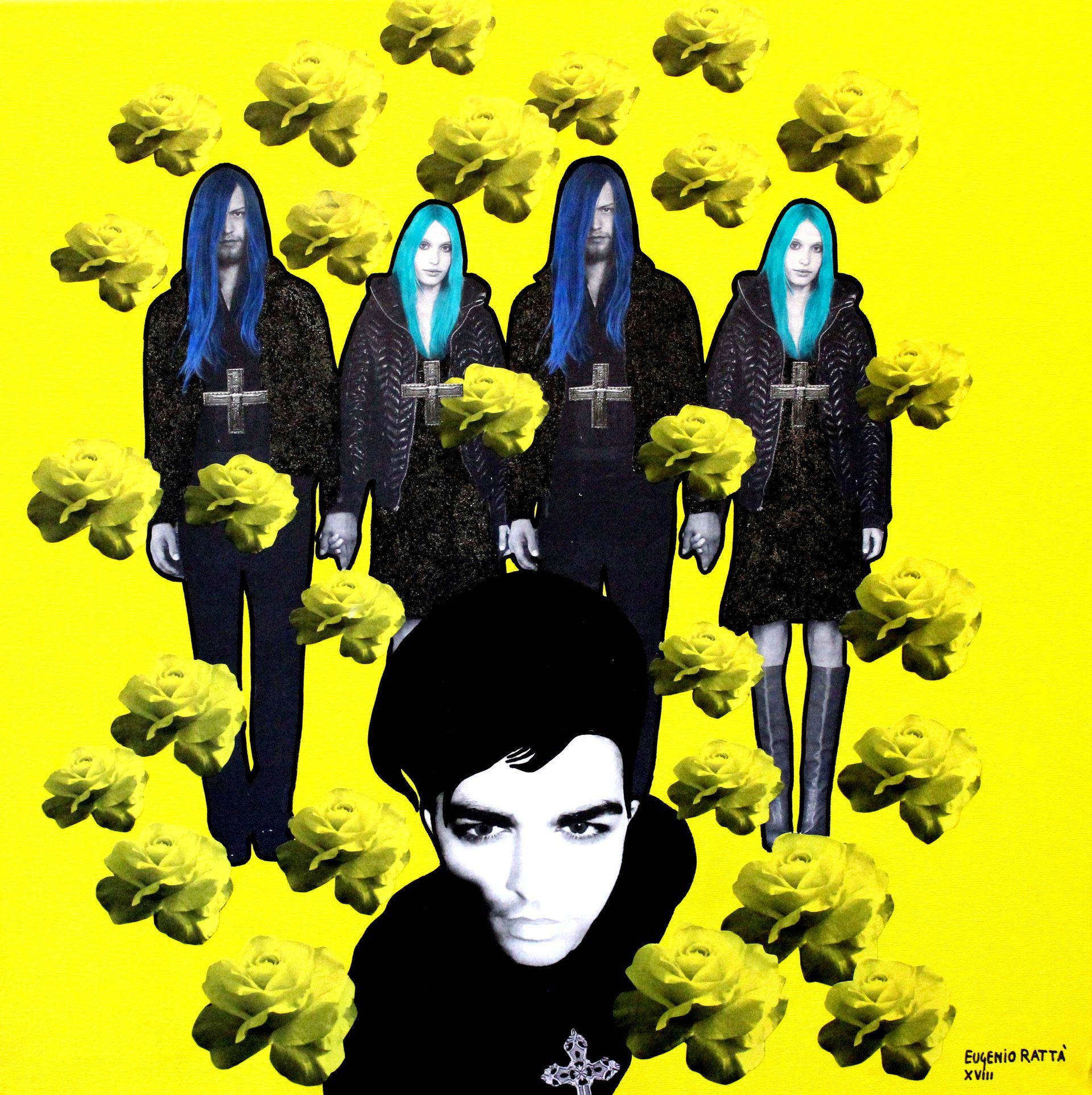 Le Coriste Mute - acrilico, collage, glitter - 80x80 cm - 2018
