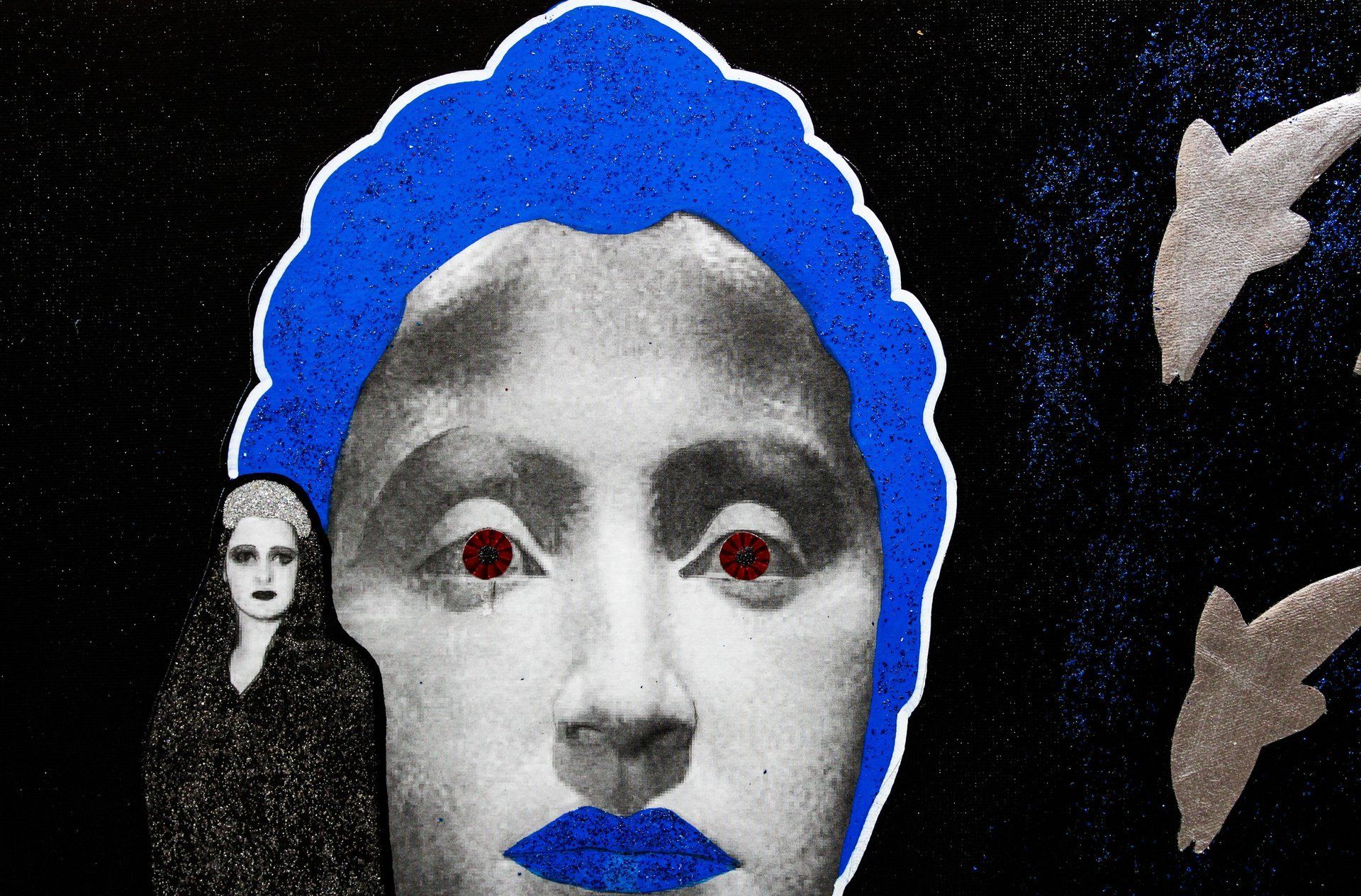 Autoritratto - acrilico, collage, glietter - 50x50 cm - 2018