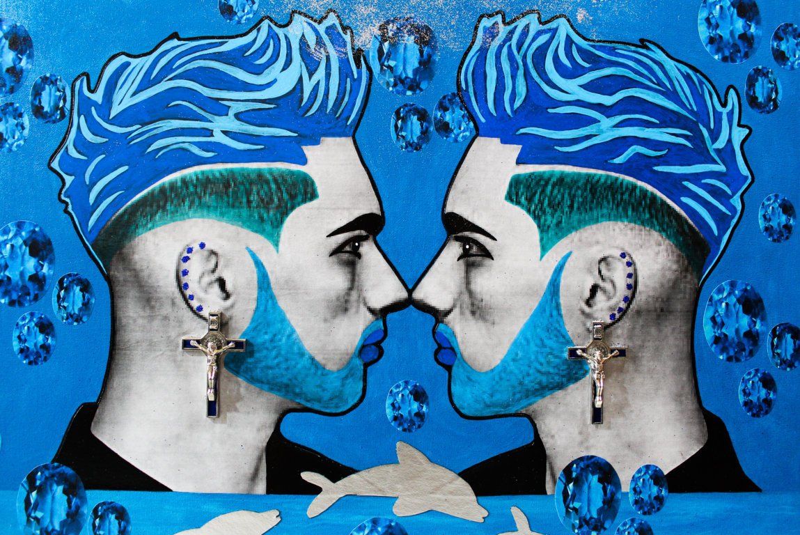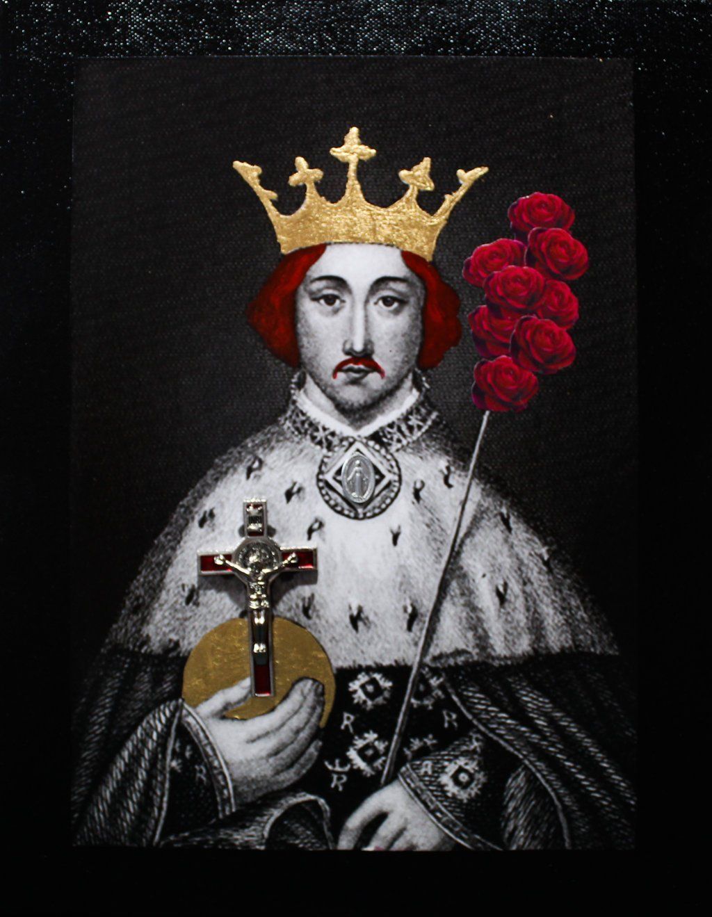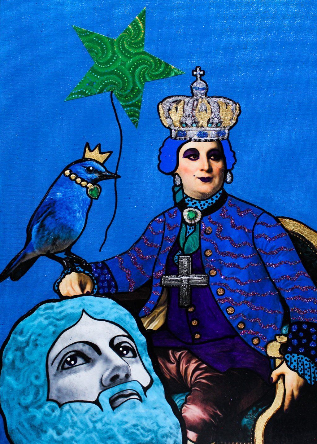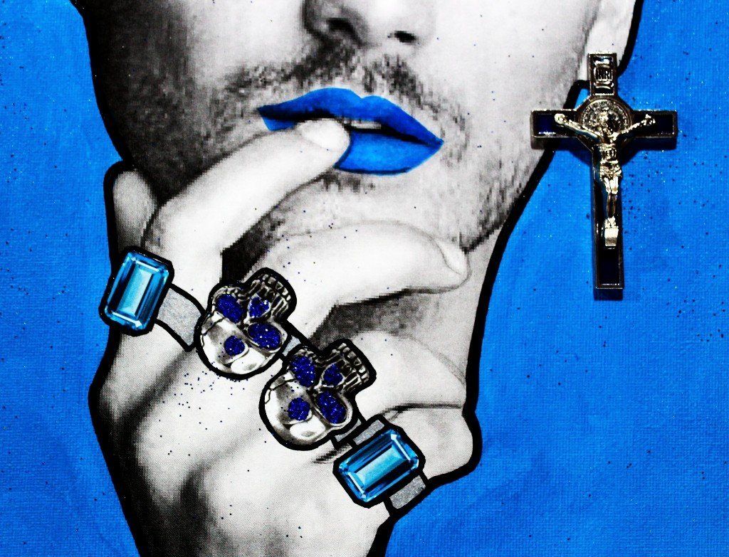 Bad Boys - "King" - acrilico, collage, foglia d'oro e glitter - 35x25 cm - 2018