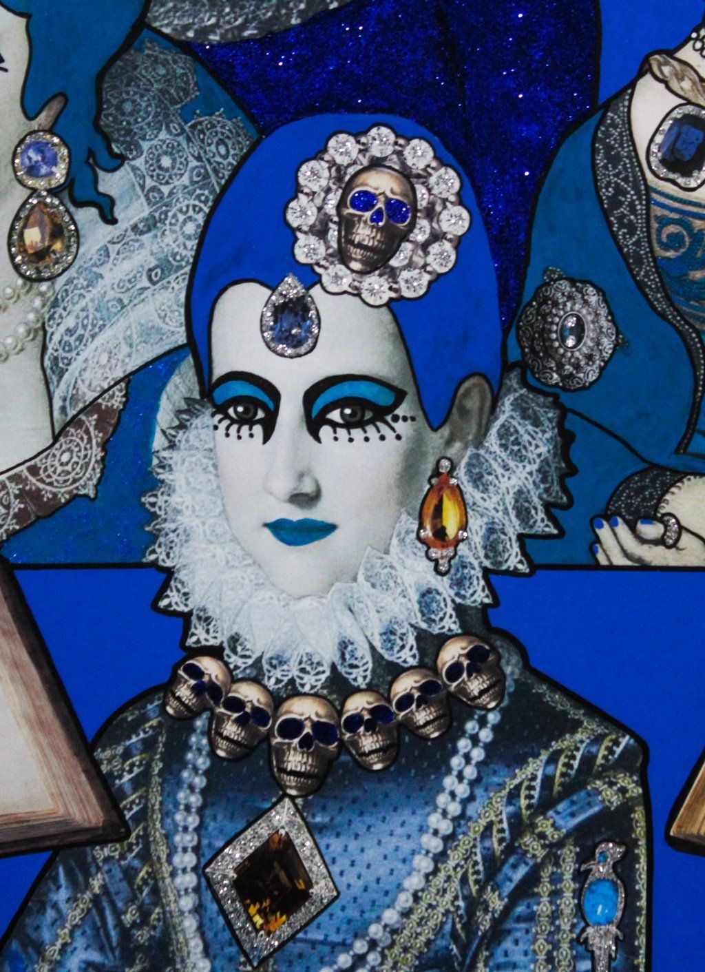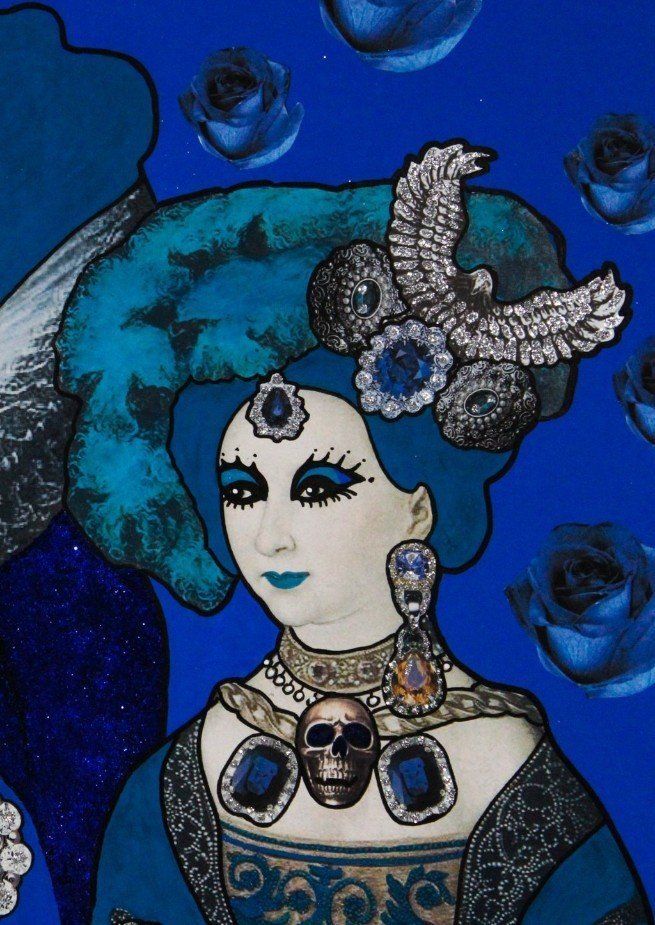 Lauren Wasser - acrilico, collage, eco pelle, metallo, glitter - 60x80 cm - 2018
