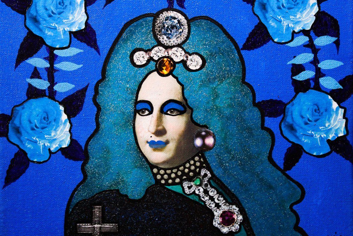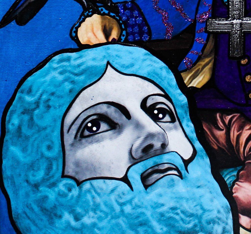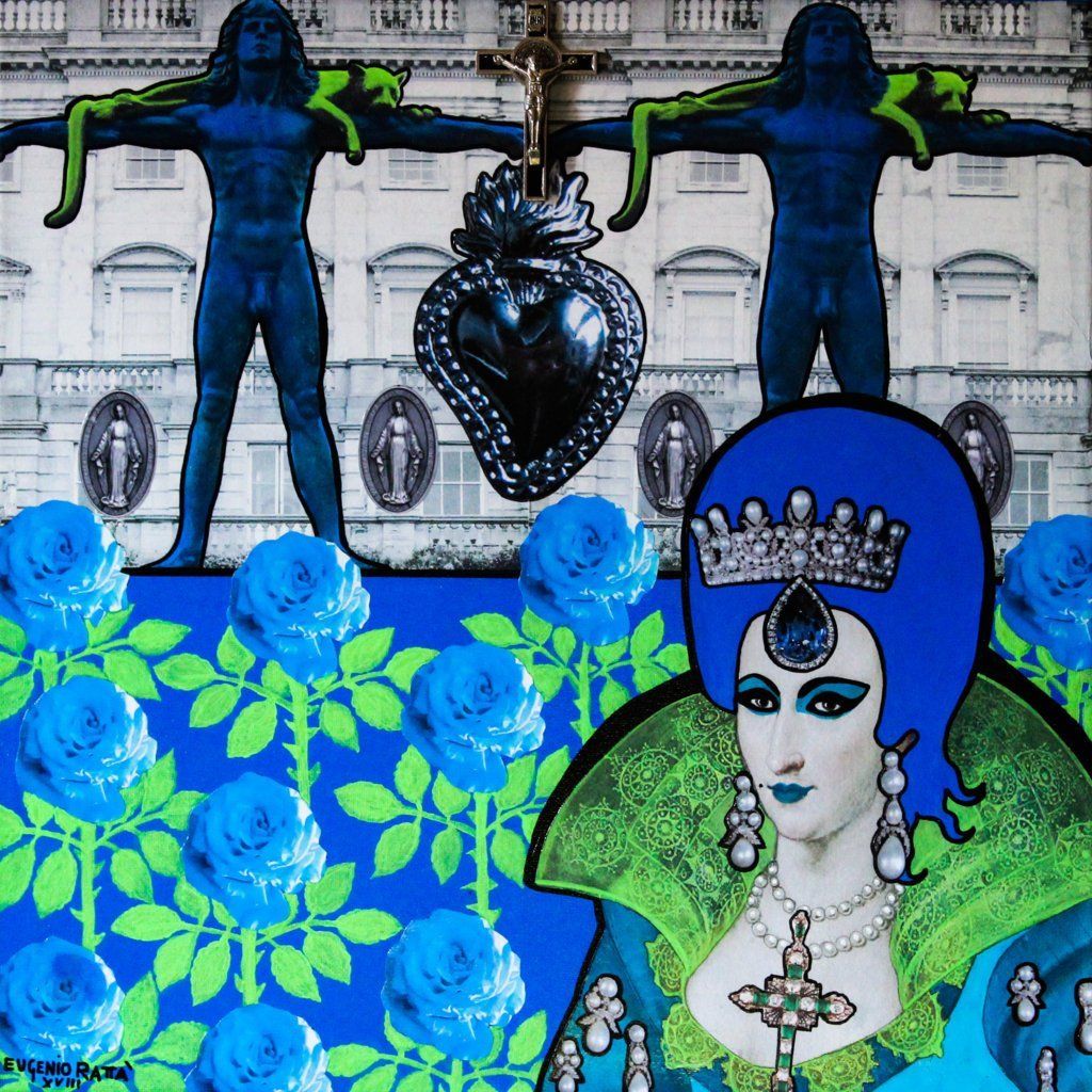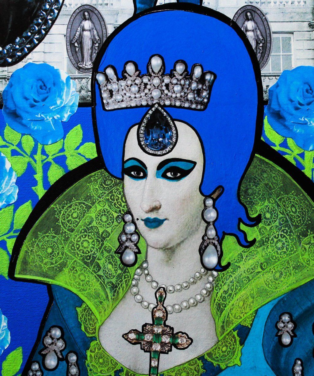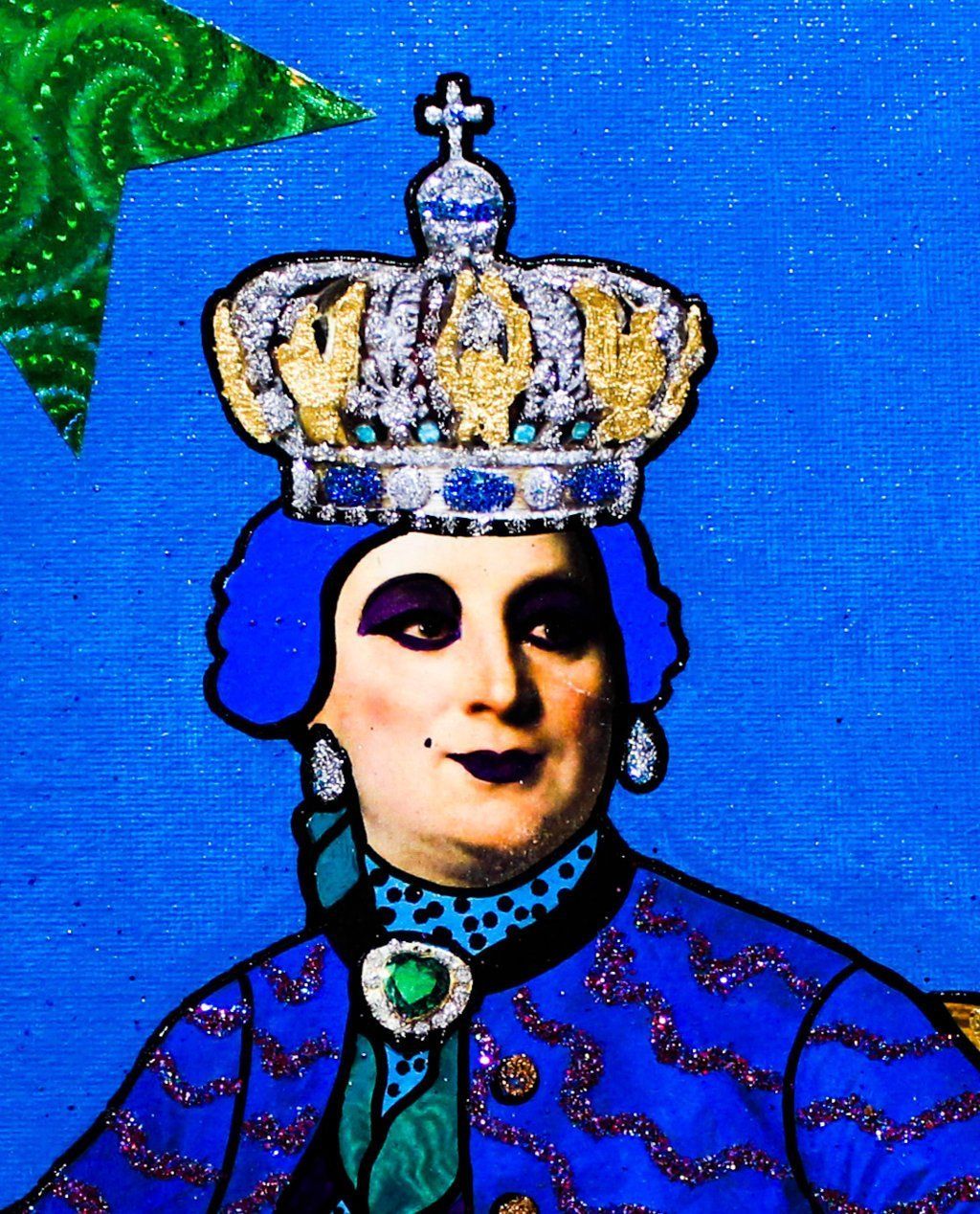 Vittorio Emanuele II - acrilico, collage, glitter - 80x80 cm - 2018