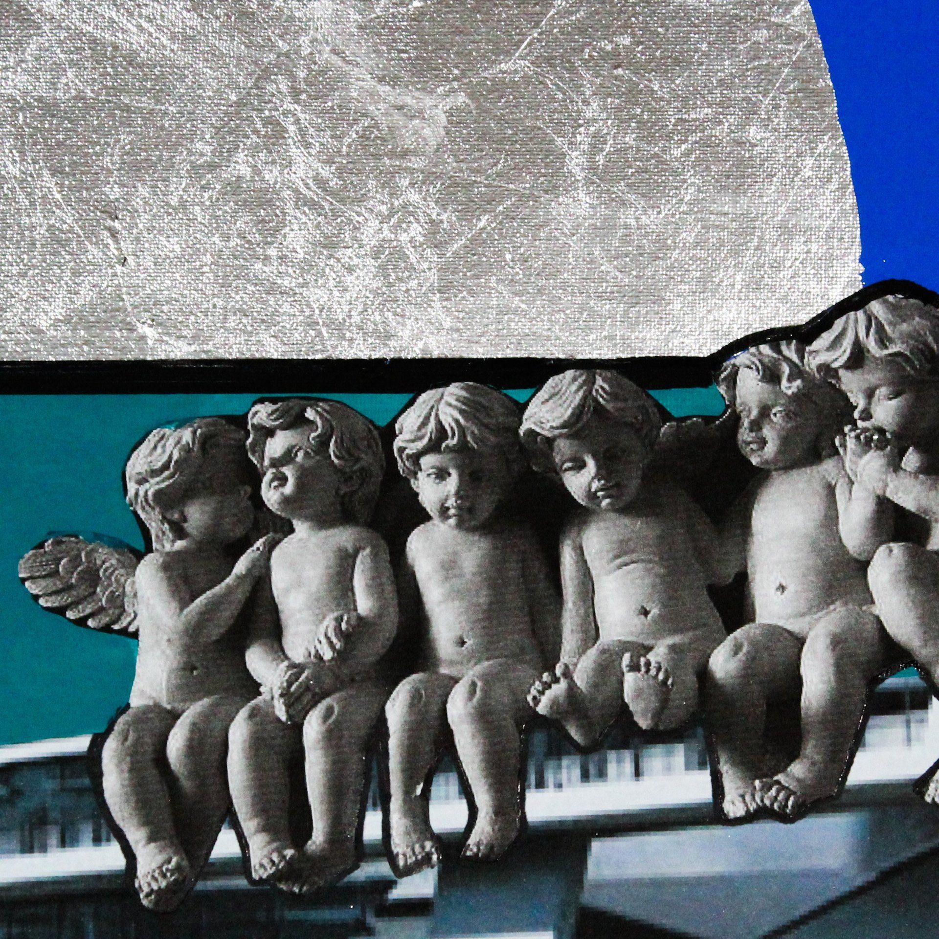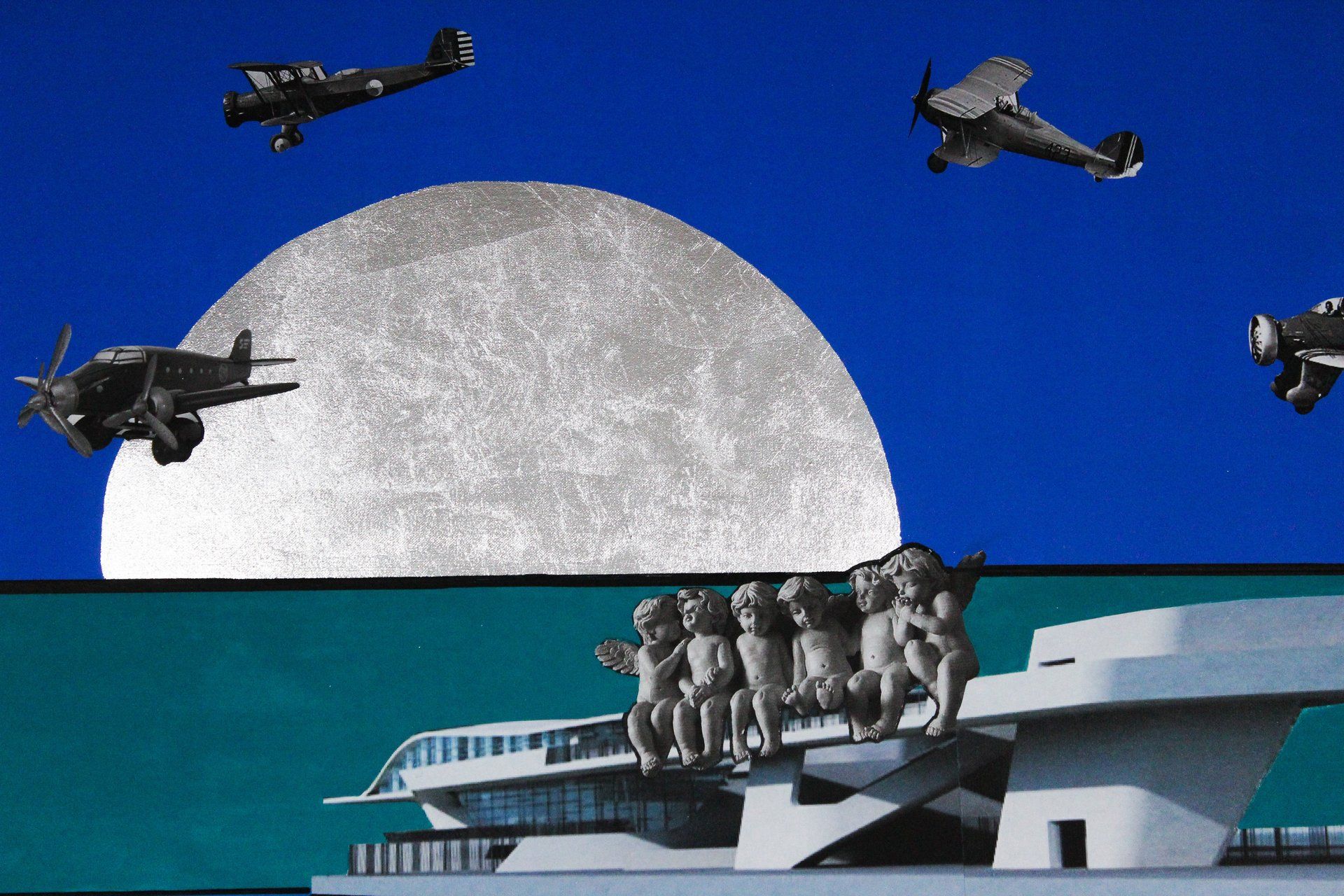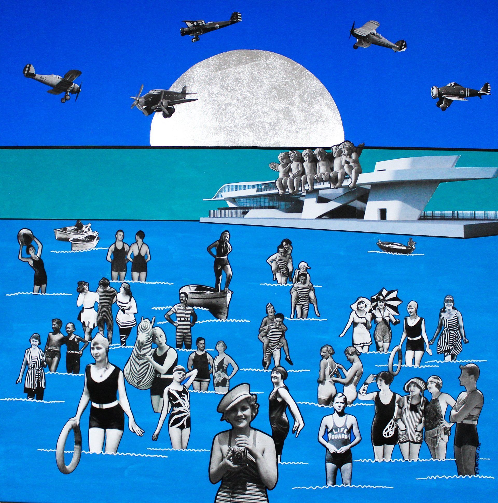 Sogno a Salerno - acrilico, collage, argento in foglia - 100x100 cm - 2018