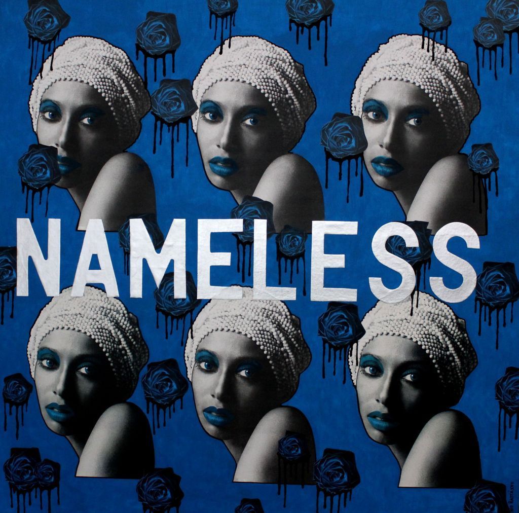 Senza identità - acrilico, collage - 100x100 cm - 2018