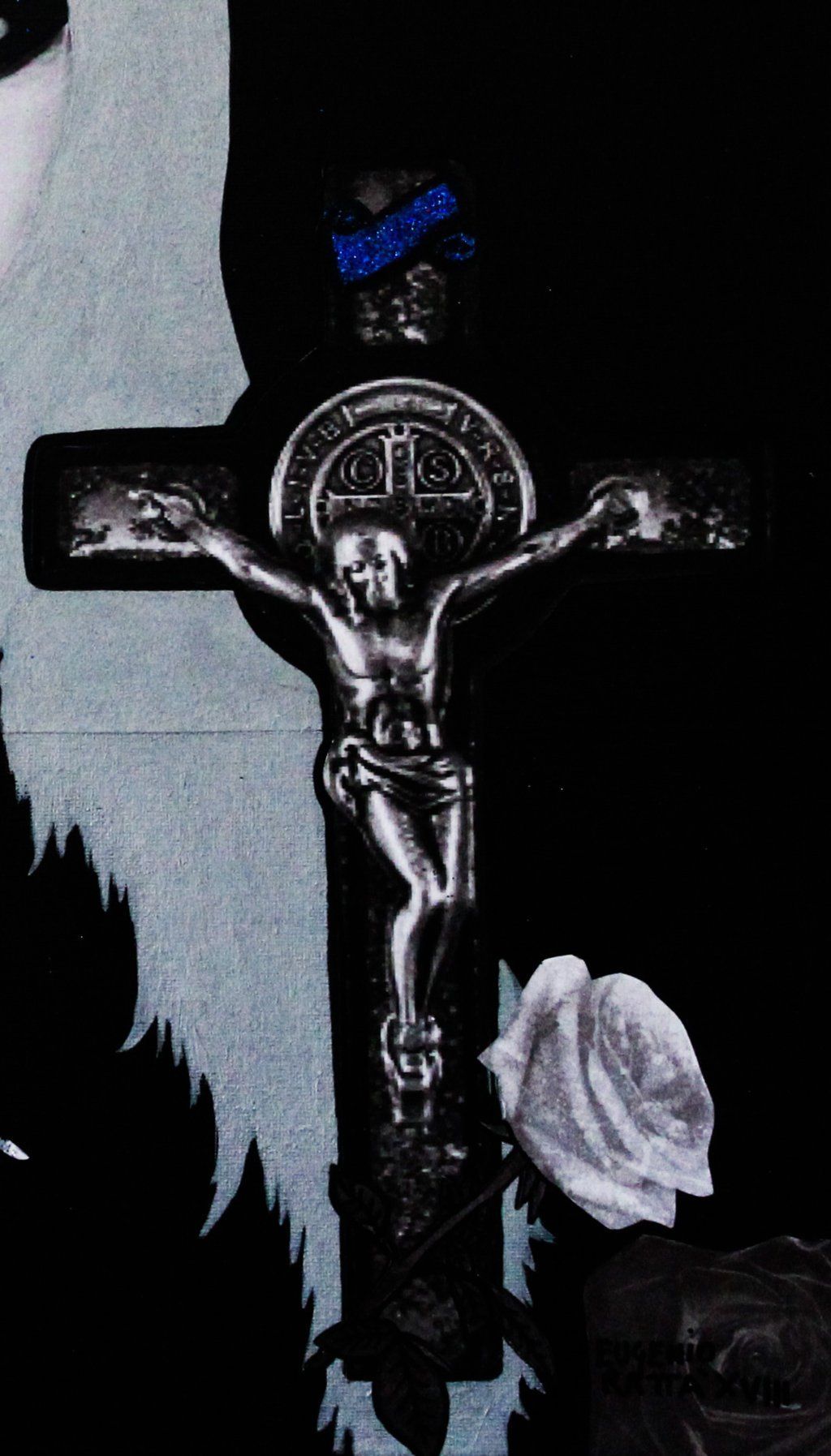 Le Coriste Mute - acrylic, collage, glitter - 80x80 cm - 2018