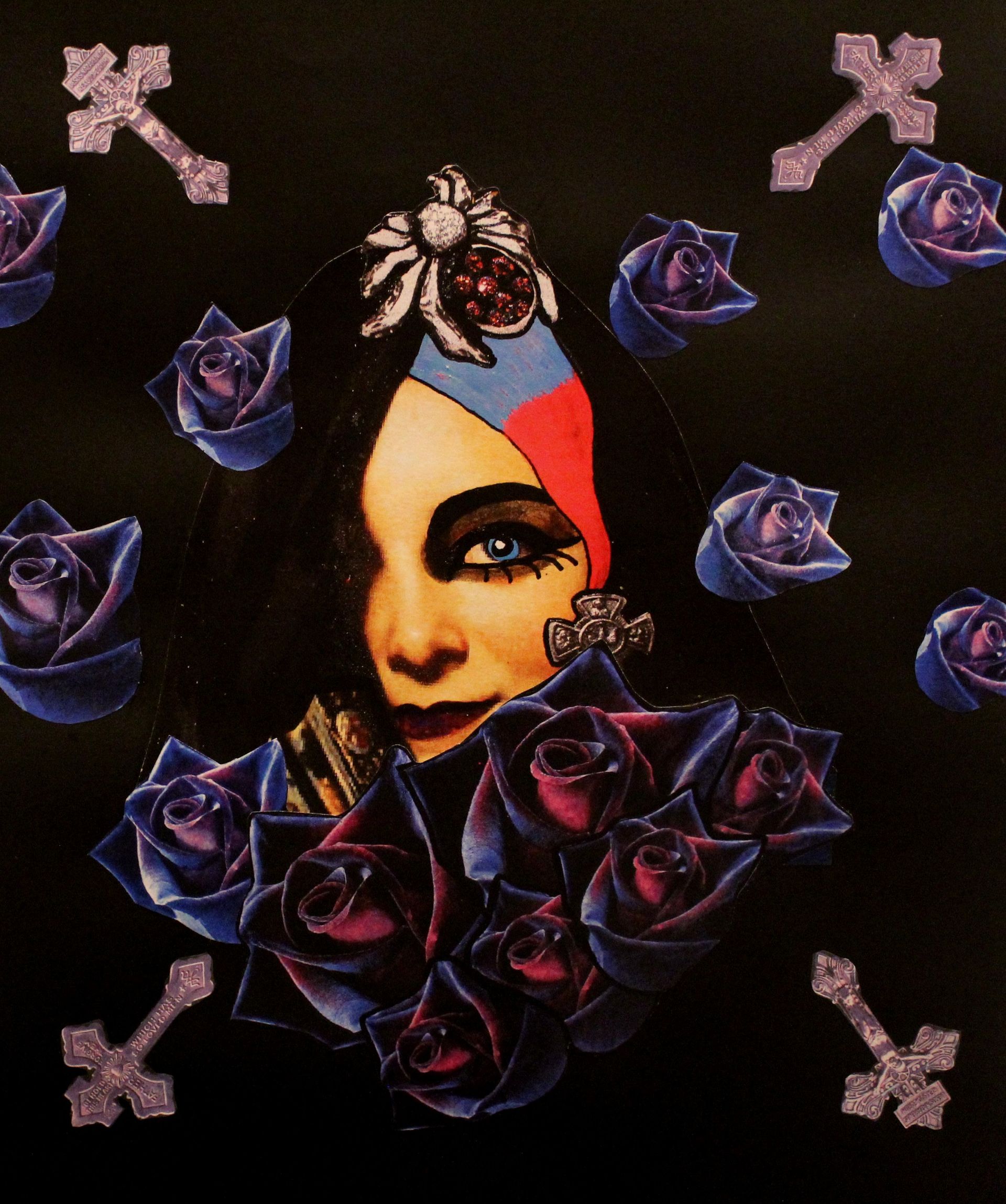 Bad Girl Remix - acrylic and collage on sweet door - diameter 22 cm - 2018